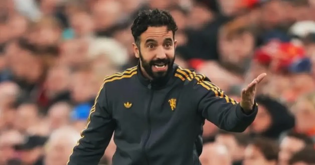 鲁本·阿莫林在比赛期间与球员们交谈。